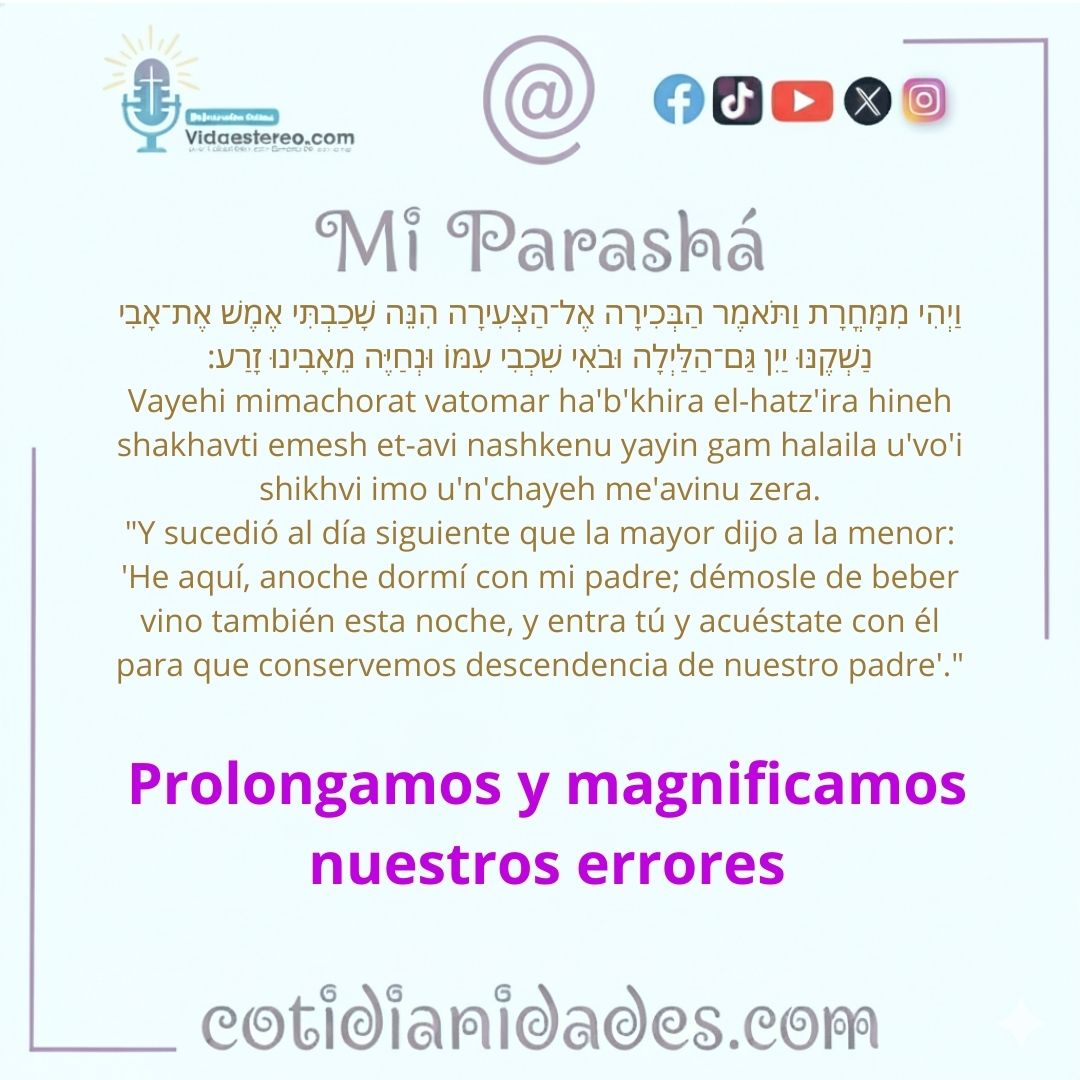 Este versículo se enmarca en un episodio complejo y perturbador de la narrativa de la Torá. Las hijas de Lot, tras la destrucción de Sodoma y Gomorra, temen que la humanidad esté condenada a desaparecer y deciden emborrachar a su …