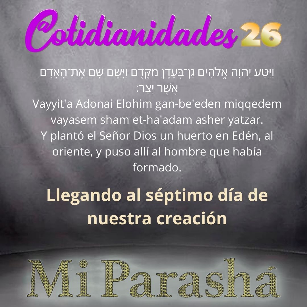 La expresión Bayom hashevii (בַּיּוֹם הַשְּׁבִיעִי): “En el séptimo día”, nos presenta el número siete como la completitud de un ciclo, siendo los siete días de la creación un recordatorio de los siete cielos y de las siete sefirot inferiores …