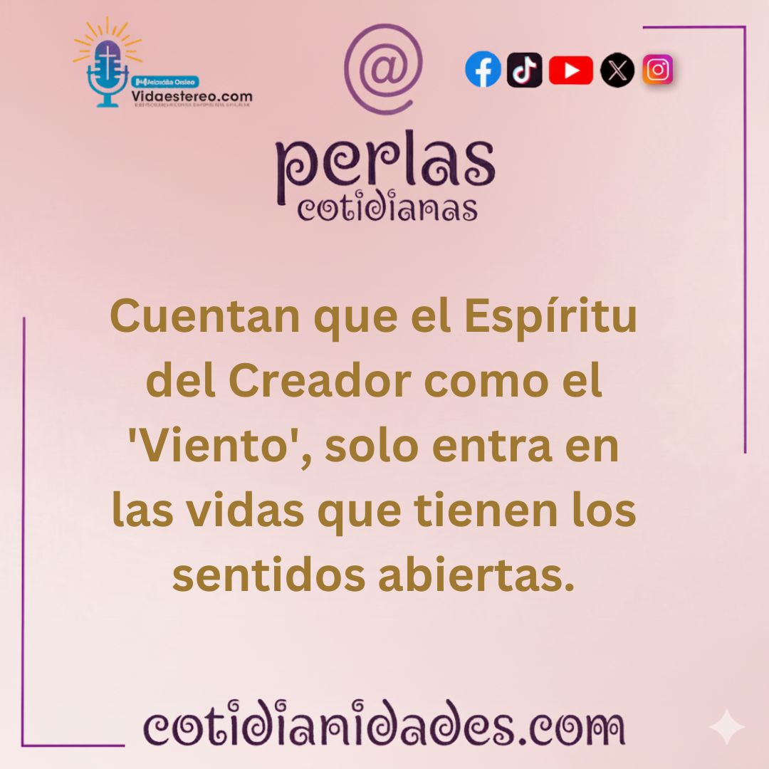 Cuentan que, el Espíritu del Creador como el ‘viento’ solo entra en las vidas que tienen los sentidos abiertos.